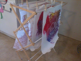Don't make the same mistake I did and start at the top! Start on the inside and lower rack first then move up, that way you don't have to lean over wet paintings to hang the rest.